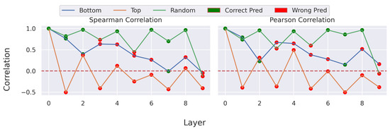 Sanity Correlation. Shows the correlation between the maps with randomized layers and the original attribution map. Refers to the attribution maps shown in
