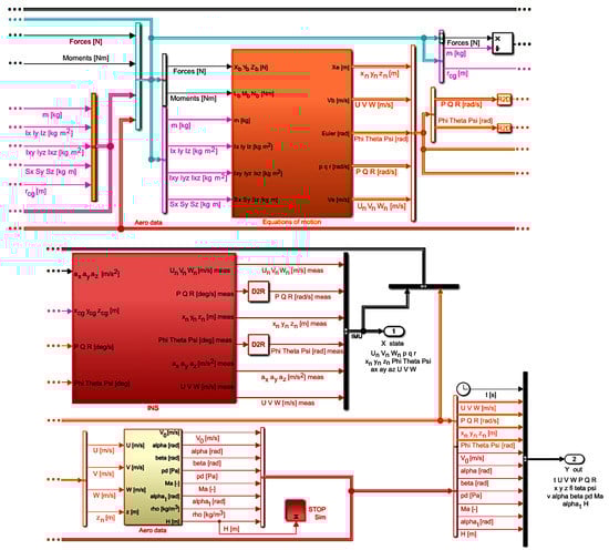 In the study, the missile was to hit the aim (reference model); the trajectory was evaluated earlier and in the control algorithm the flight data directly from the equations of motion or from the Inertial Measurement System (IMU) were used. When the missile is rotating at a high rate and medium-cost sensors are selected, the measurement errors can significantly lower the estimation quality when the equations of motion are integrated, as the flight parameters at each point depend on their values at the previous point. Thus, it was not possible to use the most popular system identification approach—the time domain output error method. However, this would not be a problem for fixed wing aircraft, helicopters, or non-spinning missiles, as the changes in their attitude occur at a slower rate and it would be possible to use this approach. On the other hand, the missile under study was flying at high Mach numbers and thus the compressibility effects had to be included. Due to the nonlinearities, it was not possible to use system identification frequency domain methods as well.