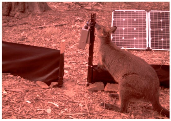 We installed 36 camera traps in remote locations of Little Desert National Park and Mt Arapiles-Tooan State Park, Victoria, Australia. These locations are dense with animals. However, they are difficult to access. Therefore, all the camera traps were left out for approximately 50 days, beginning on 5 December 2019. An artificial passage was created to better direct animals into the cameras field of view (see Figure 7). We set the cameras to be highly sensitive to movement so that the passage of small animals was not missed. The size of the detectable animal is programmable depending on the threshold set on the motion detection algorithm. We could increase and decrease the threshold; during our motion detection test, we could measure the size of 6 × 6 mm. After 50 days, the camera traps were collected and sent back to our laboratory for post-processing of data.