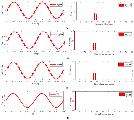 It can be seen in Figure 2d that igabc does not contain the 17th and 19th harmonics (or feature amplitudes lower than 1%) because α is calculated to minimize the harmonics of the input currents AFE rectifiers isiabc Figure 2a–c, in each power cell.