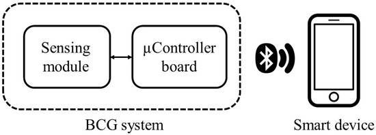 Numerous recent studies have been reported where a variety of sensors has been applied to the recording of BCG curves, including piezoelectric polyvinylidene fluoride (PVDF) [6,7], electromechanical film (EMFi) [8,9], pneumatic- and hydraulic-based sensors [10,11,12], strain-gauges-based sensors [13,14], and fiber-optic-based sensors [15,16], among others.