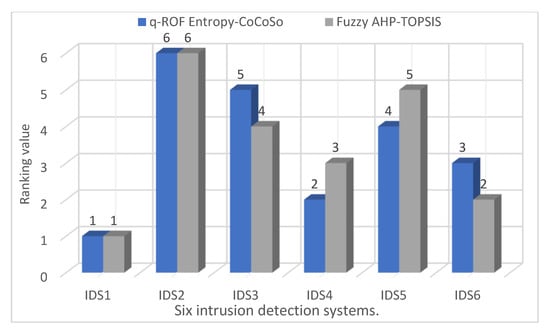 Finally, to deal with the problem of evaluating the effectiveness of IDSs, a hybrid approach consisting of two multi-criteria decision-making methods, the entropy method [21] and the combined compromised solution (CoCoSo) method [22], was adopted. The proposed hybrid approach is presented under the q-rung orthopair fuzzy environment and by utilizing the q-rung orthopair fuzzy numbers (q-ROFNs) numbers. Firstly, the entropy method was adopted to evaluate the main and sub-aspects and to determine the final weights. Secondly, the CoCoSo method was applied to evaluate the available alternatives and determine the best alternative.