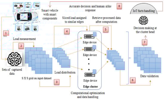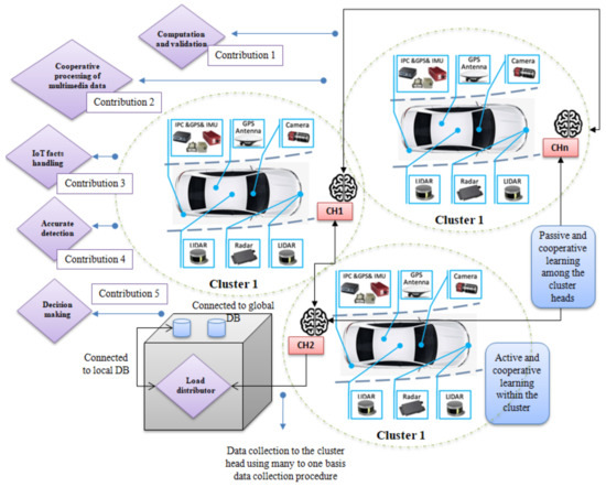 The low latency, quick response, and accurate processing of real-time multimedia data are the primary entities of an automated car. As sensors, cameras and audio adopters are the sources of real-time elements; the automated vehicle can make an edge cluster for a predominantly secured processing unit itself [4,5]. Distributed offloading to the cluster head for further load distribution is one of the best solutions for IoVs. Distributed learning and processing can provide intelligent edge clusters with the perfect consummation of quality-of-experience matrices.