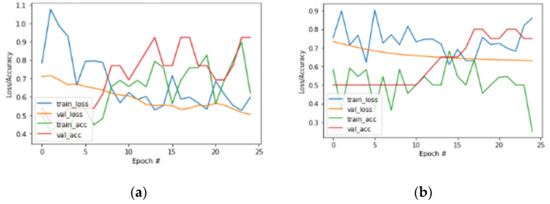 We conducted a comparative analysis of training loss/accuracy and validation loss/accuracy of an existing deep learning model. Figure 11a,b show the resultant curves for the same model.