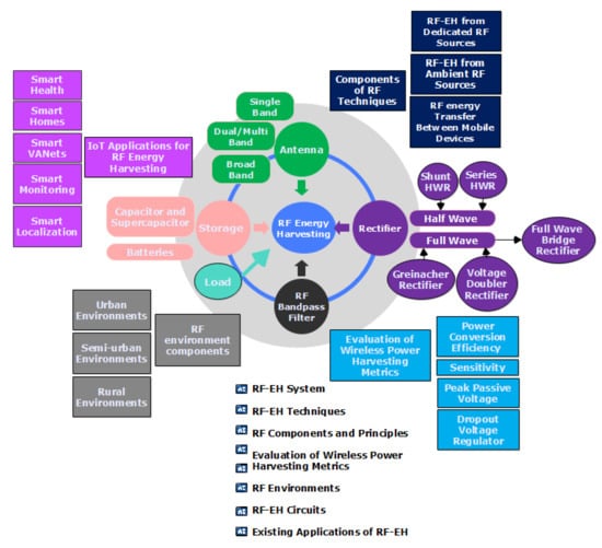 APA StyleIbrahim, H. H., Singh, M. J., Al-Bawri, S. S., Ibrahim, S. K., Islam, M. T., Alzamil, A., & Islam, M. S. (2022). Radio Frequency Energy Harvesting Technologies: A Comprehensive Review on Designing, Methodologies, and Potential Applications. Sensors, 22(11), 4144. https://doi.org/10.3390/s22114144
