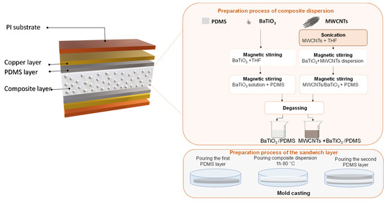 | Type of Composite | BaTiO3 Concentration | MWCNTs Concentration | Composite Thickness |