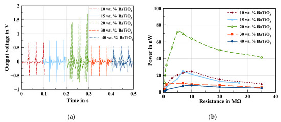 3.1. Influence of BaTiO3 Concentration on the Nanogenerator Performance
