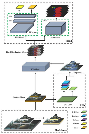 - Kaiming, H.; Gkioxari, G.; Dollár, P.; Girshick, R. Mask r-cnn. In Proceedings of the IEEE International Conference on Computer Vision, Venice, Italy, 22–29 October 2017; pp. 2961–2969. [Google Scholar]