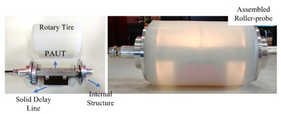 The ultrasound data were acquired using a roller-probe featuring a solid delay line housed in a silicone rubber tyre. The PAUT, with specifications found in Table 3, was positioned to sit on the top of the delay line.