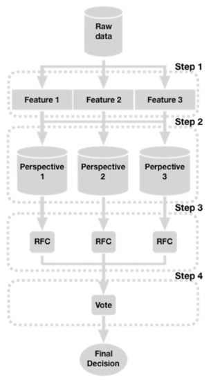 Finally, in step 4, the final decision, , is taken by soft voting of the predictions of the classifiers of the previous step using Equation (6) []: