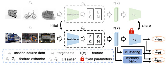 - Liang, J.; Hu, D.; Feng, J. Do we really need to access the source data? Source hypothesis transfer for unsupervised domain adaptation. In Proceedings of the 37th International Conference on Machine Learning, Vienna, Austria, 13–18 July 2020; pp. 6028–6039. [Google Scholar]