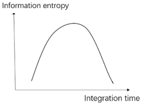 According to the analysis, if the exposure time is very long or short, the quality of the image obtained will be reduced. The information capacity of the image and the value of the information entropy are both reduced. As shown in Figure 9, the relationship between the information entropy and integration time is a parabolic function with a unique extremum point. In addition, the extremum point is monotonic at both ends. If the exposure time is appropriate, the image will have the highest value of information capacity, as well as information entropy.