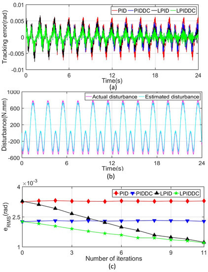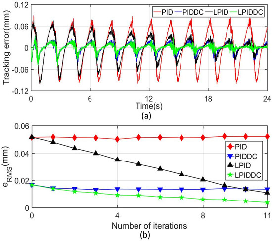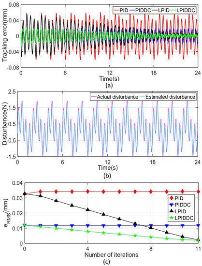 M4: LPIDDC: The proposed controller is presented in Section 2. For a fair comparison, the control parameters of the PID term, DC term, and ILC term are the same in the four controllers.