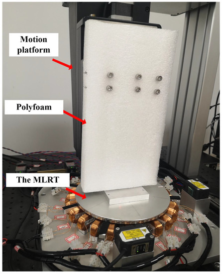 In order to simulate the unknown disturbances in the industrial field, a polyfoam is fixed above the magnetic suspension rotary table as shown in Figure 8. When the MLRT tracks the sinusoidal trajectory in the -direction like Track1, the polyfoam produces the random force acting on the rotary table, which is considered as the unknown disturbance. This test can investigate the performance of the proposed controller for this unknown disturbance.