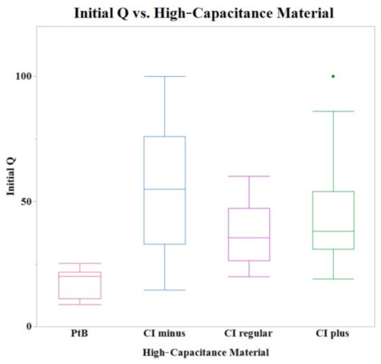 3.2. High-Capacitance Material Electrodes Initial Q Value