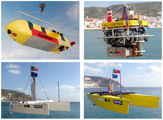 - Kalwa, J.; Pascoal, A.; Ridao, P.; Birk, A.; Glotzbach, T.; Brignone, L.; Bibuli, M.; Alves, J.; Silva, M. EU project MORPH: Current Status After 3 Years of Cooperation Under and Above Water. IFAC-PapersOnLine 2015, 48, 119–124. [Google Scholar] [CrossRef]