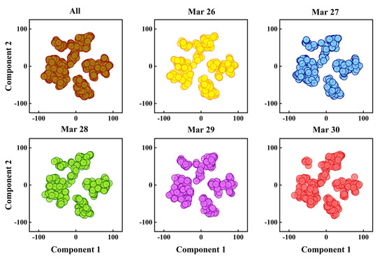 - the t-SNE algorithm was used to reduce the dimension of data in AR mode to verify the correlation between multi-dimensional data and ensure the quality of the data matrix in the FCM algorithm.