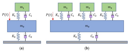 Comparison of the mechanical models of: (a) single tuned mass damper (STMD) and (b) multiple tuned mass dampers (MTMD).
