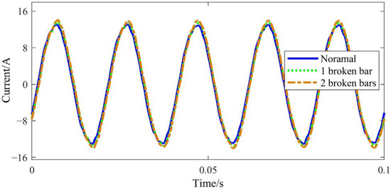 - Ouachtouk, I.; El Hani, S.; Guedira, S.; Dahi, K.; Mediouni, H. Broken rotor bar fault detection based on stator current envelopes analysis in squirrel cage induction machine. In Proceedings of the IEEE International Electric Machines and Drives Conference, Miami, FL, USA, 21–24 May 2017. [Google Scholar]