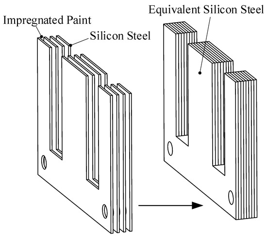 Here, is the core lamination thickness; is the thickness of insulating paint between iron core laminations; is the thermal conductivity of silicon steel sheet in iron core; is the thermal conductivity of laminated insulating paint for the iron core.