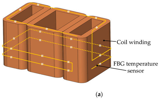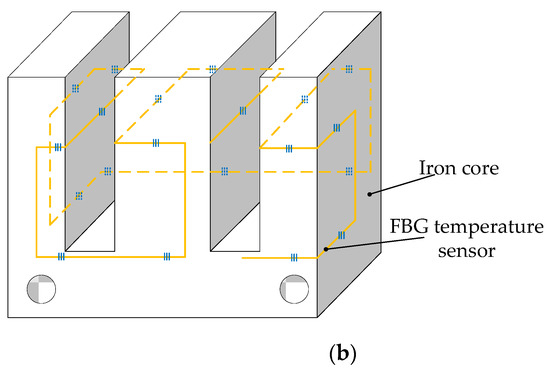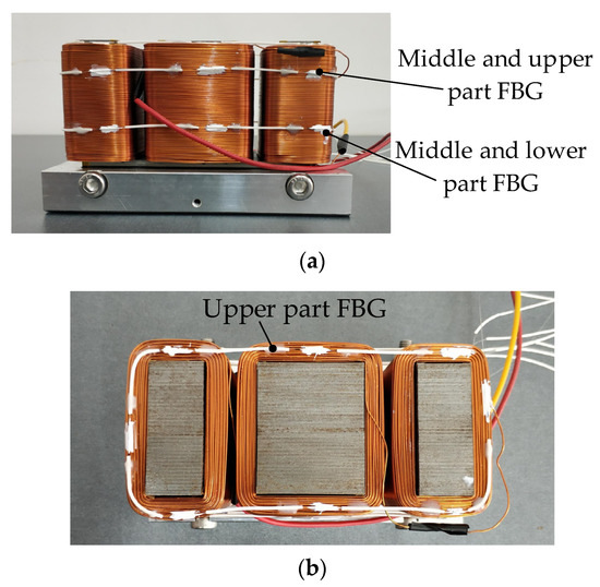 Arrangement of FBG sensor in coil winding. (a) Main view; (b) vertical view.