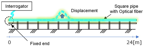 One of the applications that especially requires high-precision and high-resolution strain distribution measurement is deformation detection, which uses strain distribution data and converts them to displacement values. This is possible by attaching several optical fibers to a rod-like object. The displacement is calculated from the measured bending strain and integrating it from a fixed point/end.