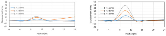 Assuming that axial force is negligible, the deflection estimation can be performed in real-time and during the engineering phase of the construction. The mechanical assumptions are schematically presented in Figure 13, right. The principles of such deflection estimation can be applied and used to determine the deformation of the retaining wall.