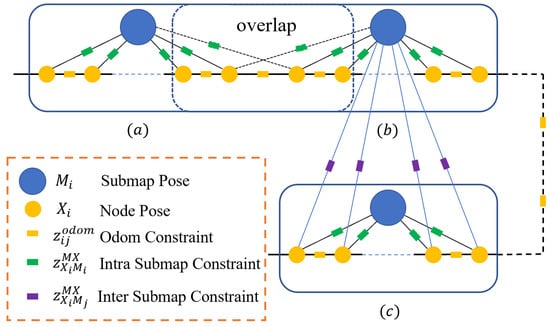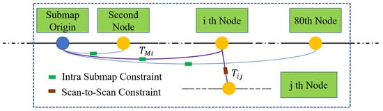 There is no doubt that local lidar odometry calculated by scan-to-map scan matching will accumulate errors with the increase in the number of nodes and submaps. Pose graph optimization will be used to minimize this kind of error in the subsystem loop closure, which will be introduced in Section 2.2.
