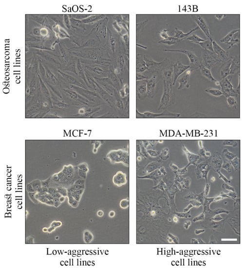 - Ren, L.; Mendoza, A.; Zhu, J.; Briggs, J.W.; Halsey, C.; Hong, E.S.; Burkett, S.S.; Morrow, J.; Lizardo, M.M.; Osborne, T.; et al. Characterization of the Metastatic Phenotype of a Panel of Established Osteosarcoma Cells. Oncotarget 2015, 6, 29469–29481. [Google Scholar] [CrossRef] [PubMed] [Green Version]