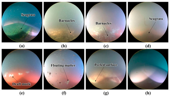 Conventional hull cleaning is performed by divers. Recently, however, studies have been conducted on cleaning hull surfaces using a remotely operated underwater vehicle (ROUV) [5,6,7,8,9]. A human operator observes the submerged hull surface through a camera mounted on the ROUV and checks its condition. The ROUV is subsequently remotely controlled to clean the affected parts of the hull. However, autonomous hull cleaning without human intervention requires ROUVs capable of recognizing the hull condition. In addition, since the hull condition should be immediately fed back to the ROUV, the process of recognition must occur in real-time.