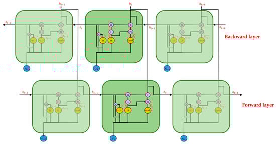 The third and fourth types of RNNs are the Bi-directional Long Short-Time Memory (Bi-LSTM) and Bi-directional Gated Recurrent Unit (Bi-GRU) networks, and their schematic diagrams are in Figure 7 and Figure 8.