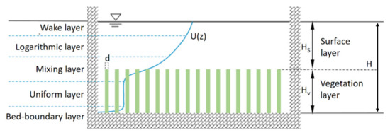 Schematic diagram of flow with vegetation; source: Shi et al. [4].