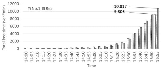 Figure 7 shows the comparison of the total loss time for a two-hour period between the observed data and the simulated data for case No. 1.