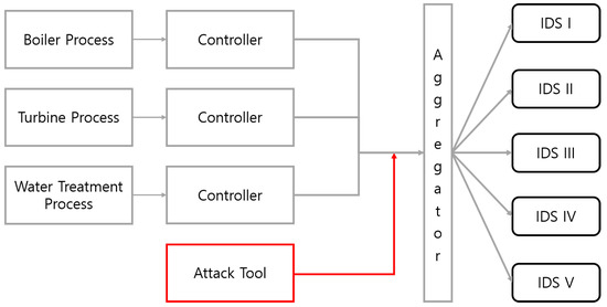 - Choi, S.; Yun, J.H.; Min, B.G.; Kim, H. POSTER: Expanding a Programmable CPS Testbed for Network Attack Analysis. In Proceedings of the ASIA CCS ’20: 15th ACM Asia Conference on Computer and Communications Security, Taipei, Taiwan, 5–9 October 2020; Association for Computing Machinery: New York, NY, USA, 2020; pp. 928–930. [Google Scholar] [CrossRef]
