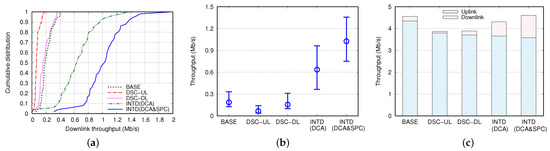 - Owing to the differentiated transmission based on the DCA scheme, INTD(DCA) greatly improved the DL throughput compared to those in the BASE, DSC-UL, and DSC-DL cases.