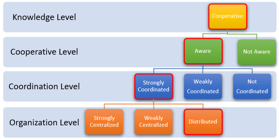 Figure 1, the ability of robots to define their work, the coordination, and management style as a result of cooperation are the characteristic features of swarm robotics.