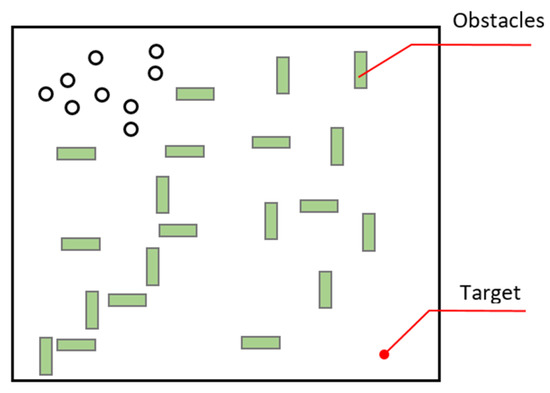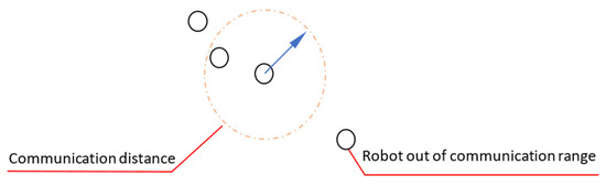 Communication area: Under normal conditions, the robot makes a circular communication in such a way that there is no empty angle around it, or we assume that it does so. However, this circular structure may be disrupted due to reasons such as obstacles around the robot and the characteristic features of the antenna used. In such a case, the robot cannot exhibit the expected behavior as it will stop giving and receiving signals. Therefore, it cannot send data to the next robot and may not receive data itself. The behavior of the swarm may deteriorate, and the mission may be compromised.