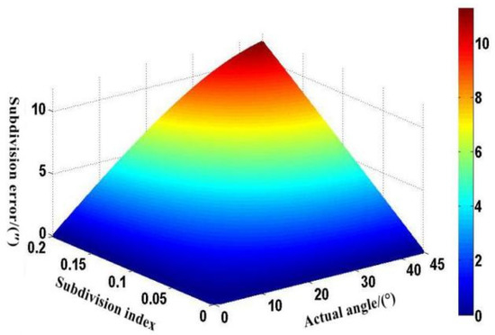 When is close to zero, the maximum subdivision error can be approximately expressed as , which is converted to the relative value expression of the angle: