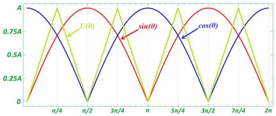 According to the Fourier space transform theory, it can be obtained that the periodic photoelectric moiré fringe signal actually output by the grating in the actual output process can be expressed by the Fourier series expansion. It can be seen from the previous harmonic error amplitude–frequency analysis that in the precision grating system, the harmonic components that have the greatest influence on the subdivision error of the photoelectric moiré signal are the second, third, and fifth harmonics of the photoelectric signal. In this paper, taking the third harmonic with the highest influence as an example, the third harmonic component in the signal is represented by U′, and the maximum harmonic subdivision error can be expressed as Formula (15):