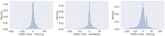 Figure 3 presents the complete dataset divided into subsets; the x-axis represents the time and the y-axis the traffic flow values. Figure 4 presents similar data distributions of the subsets.