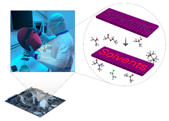 Huge amounts of organic and inorganic solvents are being used in almost all industries and research. Most of them are generally recognized as hazardous and toxic to the human body as well as to the environment. In particular, volatile organic compounds have been attracting significant attention recently because they are easily vaporized even at room temperature to a dangerous level of concentration. Therefore, it is necessary to strictly monitor and reduce the atmospheric concentration, especially indoors. According to recent reports, organic solvents, which were used for semiconductor manufacturing processes, caused serious symptoms among workers, such as headaches, dizziness, confusion, nausea, dyspnea, hepatotoxicity, and central nervous system depression, and this has become a hotly debated social issue [1,2,3]. Various organic solvents are being used in semiconductor manufacturing processes, mainly washing and cleaning [4]. Although they are very carefully controlled, sometimes the leakage of solvents occurs inadvertently in the liquid or vapor phase. The leakage of the vapor phase is more serious because it may not be recognized or noticed easily in advance. Therefore, it is very useful and important for workers to perceive the leakage of the vapor phase of organic solvents with textile-based sensors without any electronic devices before the problem becomes serious.