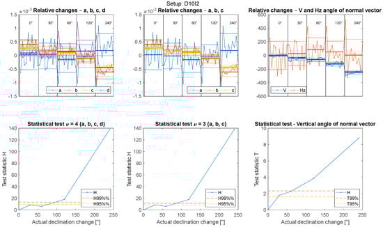 Since changes in the normal vertical angle correspond directly to physical changes caused by tilting, the data visualized in the upper-right figure can also be used to assess the accuracy (not only the change significance) of the board declination.