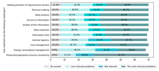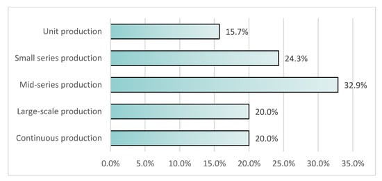 The information presented in Table 1 was taken into consideration in the process of the research development. However, by studying the relevant literature, besides extracting information for the questionnaire development, we identified its limitations and flaws. Precisely, the existing studies focus on individual countries, such as the UK [18], Brazil [23], Austria [22], and Sweden [24], as well as specific industrial challenges. On the contrary, the presented research work involves industries from all over the world while adopting a more holistic approach aiming to identify the problems at all stages of the production process.