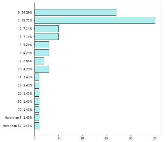 - Questions with predefined answers based on an extended Likert scale [25] with the following answers: not at all, to a small extent, to some extent, to a moderate extent, to a great extent, to a very great extent—For employees’ skills.