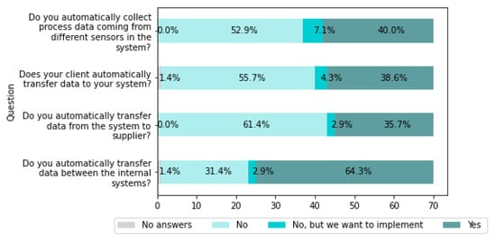 - Yes; No; No, but we want to implement it—For business management and data flow systems;