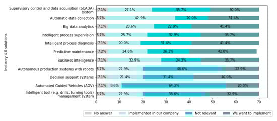 - Implemented in our company; We want to implement; Not relevant—For Industry 4.0 solutions.
