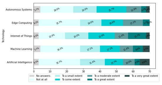The remainder of this paper is organized as follows. Section 2 presents a literature review on industrial companies’ challenges and needs in the fields of AI, IoT, and EC. Section 3 details the selected methodology to conduct this work. Section 4 presents the obtained results from the companies’ surveys. In Section 5, the questionnaire results are statistically analyzed. Section 6 presents the results of the interviews. Section 7 discusses the main findings discovered in this research. Finally, Section 8 concludes the paper.