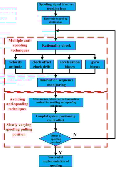 Flow chart of spoofing loosely coupled GNSS/IMU algorithm.