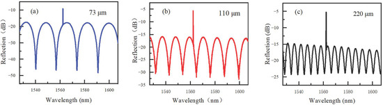 Spectra of the FPI probe with different hollow core fiber lengths of (a) 73, (b) 110 and (c) 220 μm.