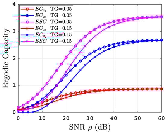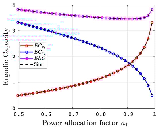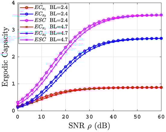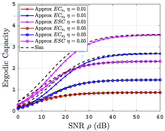 In this section, we derive an approximated closed-form expression for the ergodic capacity () of the proposed system under the condition . The instantaneous channel capacities for the two messages, , are given by [13,22]
